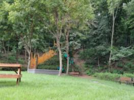 놀이터 내에는 아이들이 흥미를 가지고 즐겁게 뛰어놀 수 있도록 유아놀이시설 4종이 포함된 모험놀이시설과 지형을 활용한 경사놀이터, 모래놀이터 등 다양한 생태·모험놀이시설을 설치했다.