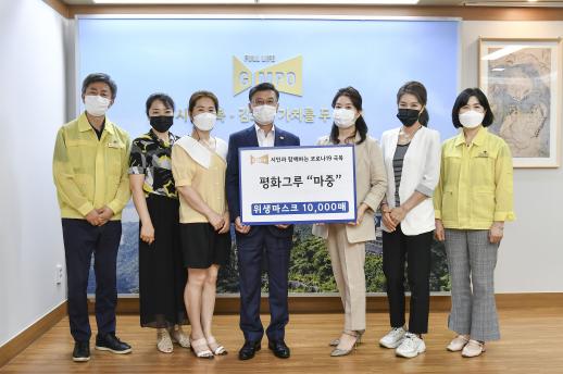 지난 11일 평화그루 마중(대표 장미화)이 위생마스크 10,000매를 김포시에 기탁했다.