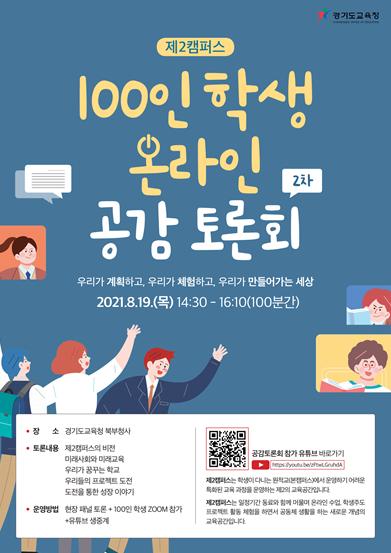 경기도교육청이 오는 19일 학생과 함께 만들어가는 제2캠퍼스 비전 만들기를 주제로 학생 공감 2차 토론회를 개최한다.
