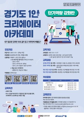 경기도와 경기콘텐츠진흥원이 8월 19일부터 ‘경기도 1인 크리에이터 아카데미’ 단기역량 강화반 교육생 80명을 선착순 모집한다.