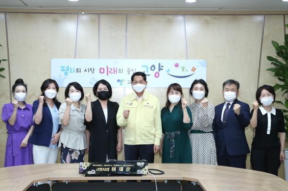 고양시가 지난 18일 건강하고 안전한 보육환경을 조성하고 코로나19 사태 극복을 위한 발전방안 모색을 위해 어린이집 연합회와 간담회를 진행했다.