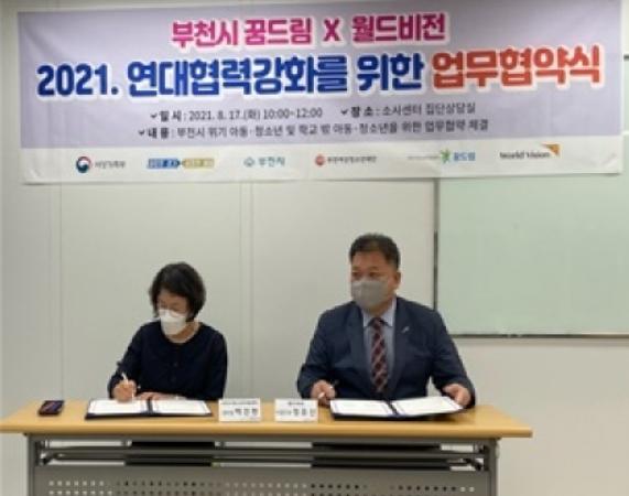 부천여성청소년재단 운영 부천시학교밖청소년지원센터에서는 코로나19 방역수칙을 준수하며 월드비전 경인지역본부와 업무 협약을 맺었다.