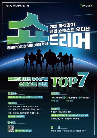 경기도농수산진흥원이 경기도 농산물 온라인몰 ‘마켓경기’ 전문 청년 쇼호스트 7명을 공개 오디션 ‘쇼드리머’를 통해 선발한다.