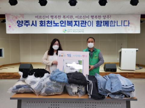 주민정 회천노인복지관장은 “지난 7월부터 직장․공장새마을운동양주시협의회와 업무협약을 체결하여 양말, 감자, 빵 등을 후원받아 어르신들에 많은 도움을 주고 있는데 또 이렇게 청바지를 후원받아서 너무나 감사하다고” 고마움을 표했다.