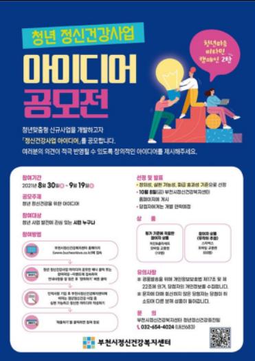 참여자에게는 창의성, 실현 가능성, 파급 효과성을 기준으로 추첨을 통해 소정의 상품을 증정할 예정이다. 당첨자 명단은 오는 10월 8일 부천시정신건강복지센터 홈페이지에서 확인할 수 있다.