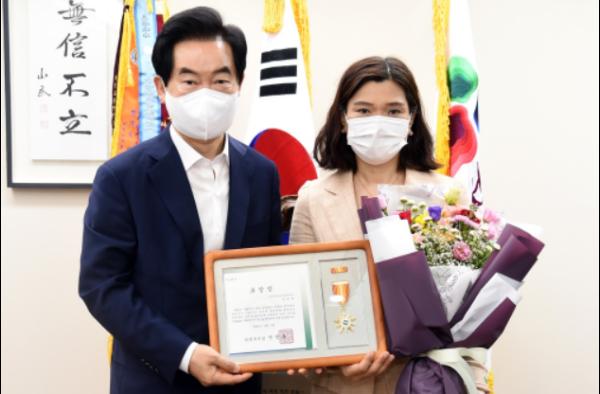 코로나19 방역 수칙 준수를 위해 이순규 의정부시청소년상담복지센터 상담사가 시장상을 대표로 받았다.