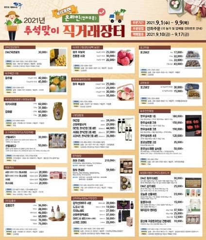 파주시는 민족 최대 명절인 추석을 앞두고 지역경제 활성화를 위한 2021년 추석맞이 전화주문 직거래장터를 9월 1일부터 9일까지 운영한다.