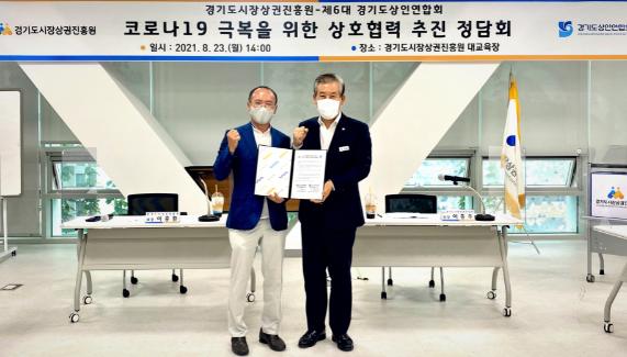 경기도시장상권진흥원과 제6대 경기도상인연합회는 1차 백신 접종률이 50%를 넘어서고 있는 상황에도 불구하고 코로나19 사회적 거리두기 4단계 장기화 등으로 경영악화를 겪고 있는 전통시장의 위기 극복을 위하여 지난 8월 23일 각 기관 대표의 정담회를 실시하고 상호협력 공동결의를 진행했다고 밝혔다.