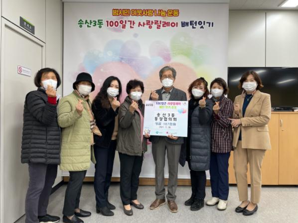 원유현 송산3동 통장협의회장은 “나눔으로 행복을 잇는 이번 100일간 사랑릴레이를 통해 지역의 취약계층에 조금이나마 힘이 되고자 통장님들이 힘을 모아 참여하게 되었으며, 어려운 이웃들이 따뜻한 겨울을 보낼 수 있도록 작은 도움이 되길 바란다.”고 밝혔다.