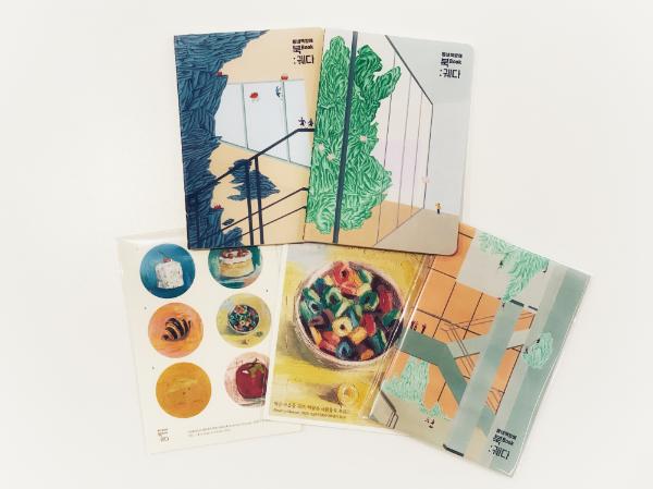 서점은 인증자에 ‘북궤다’ 세트를 제공하며, 서점별 수량(약 50개씩)이 소진될 때까지 증정 행사는 지속된다. ‘북궤다’ 세트는 핸디형 노트 2종, 접착 메모지, 엽서, 스티커로 구성됐으며 모두 아트경기(경기 미술품 활성화 사업) 선정 작가의 작품으로 꾸며졌다.