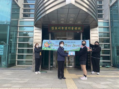 (재)김포시청소년재단 청소년수련원은 지난 11월 9일 여성가족부 공모사업 ‘유(Youth)ㆍ기(부)ㆍ농(사)’ 프로그램 일환으로, 청소년들이 직접 제작한 스마트팜 자료집을 김포시농업기술센터와 월곶면행정복지센터에 전달하였다. 전달한 자료집들은 관공서에 배치 후, 필요한 사람들에게 배부할 예정이다.