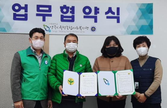 주요 협약 내용은 양주시 취약계층 돌봄을위한 협력적 관계 유지, 양주시 취약계층을 지원하기 위한 자원, 프로그램 교류 및 협력, 기타 두 기관이 필요하다고 협의되는 분야에 대해 적극적으로 협력하기로 했다.