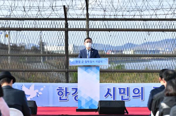 정하영 김포시장은 “철책철거는 한강하구 일대의 역사와 번영을 되찾고 남북교류와 협력의 새로운 물꼬를 트는 일”이라면서 “아라마리나에서 전류리포구를 거쳐 애기봉에서 다시 대명항까지 해강안을 잇는 관광벨트를 조성하고 멀게만 느껴졌던 한강변 트래킹, 가족과의 힐링산책을 현실로 만드는 등 시민휴식공간을 조성하고 도시의 성장과 발전의 또 다른 큰 축으로 삼을 것”이라고 말했다.