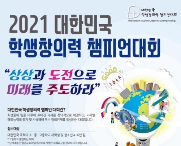 대한민국 학생창의력 챔피언 대회는 미래 사회를 이끌어갈 창의 인재를 육성하기 위해 특허청이 주최하고 한국발명진흥회에서 주관하는 대회로 지난 10월 15일(금) 온라인으로 전국 본선대회가 개최되어 시·도 예선대회를 통과한 전국 50개 팀이 표현과제로 경연을 벌였다.