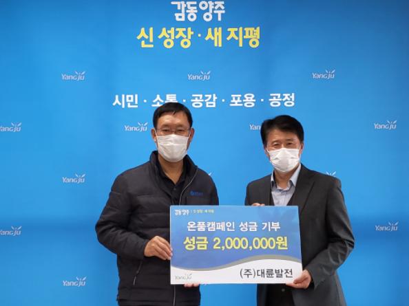 양주시 회천4동은 지난 10일 (주)대륜발전에서 행정복지센터를 방문해 관내 어려운 이웃을 위해 써달라며 성금 200만원을 기부했다고 밝혔다