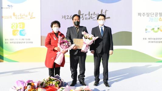 이날 기념식은 파주시 농업인단체협의회(회장 송훈섭)의 주관으로 농업인단체와 유관기관 관계자 등이 참석한 가운데 진행됐다. 특히, 단계적 일상회복 사회적 거리두기를 준수해 철저한 방역기준에 따라 시상식 위주로 진행됐다.