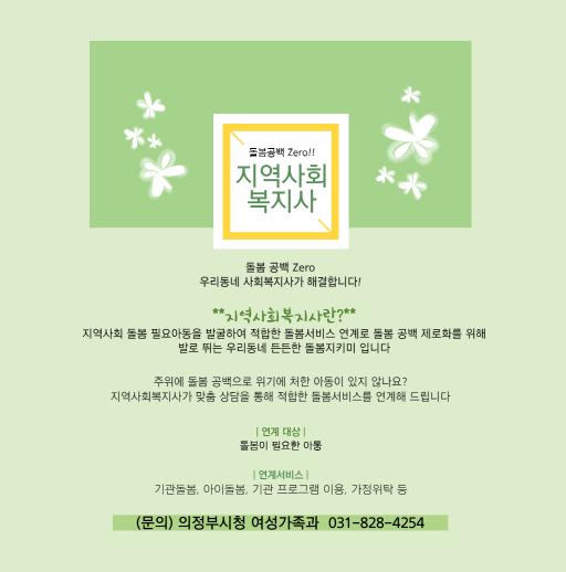 류윤미 여성가족과장은 “아동이 안전하고 행복한 의정부시를 만들기 위한 노력의 일환으로 이번 캠페인을 준비했으며, 아동학대 예방을 위한 행정 및 재정적 지원을 늘려갈 계획이다”고 밝혔다.