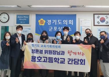 경기도의회 교육기획위원회 정윤경 위원장(더민주, 군포1)은 경기도의회 군포상담소에서 용호고등학교 학부모회장 및 임원진과 운영위원장, 교감 등 관계자들과 용호고등학교 환경개선사업 예산 관련 정담회를 가졌다.