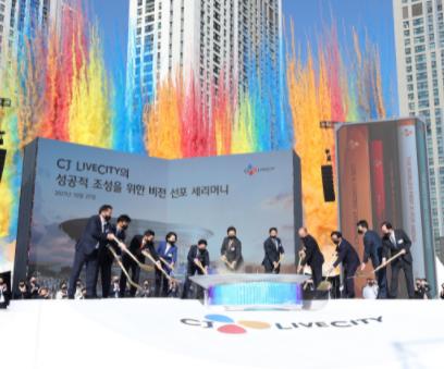 또한 지난달 27일에는 ‘CJ라이브시티 아레나’ 착공식이 열렸다. 국내 최초·최대 규모인 아레나는 실내 2만 명, 야외 4만 명 이상 수용이 가능한 세계 최초 K-팝 전문 공연장이다. 연면적 7만3,500㎡로 계획돼 2024년 완공을 목표로 한다. 약 32만6,400㎡ 규모로 자리 잡을 CJ라이브시티에는 아레나뿐만 아니라 콘텐츠 경험시설, 문화콘텐츠 업무시설, 랜드마크시설 등 K-콘텐츠를 누릴 수 있는 복합단지가 조성될 계획이다.