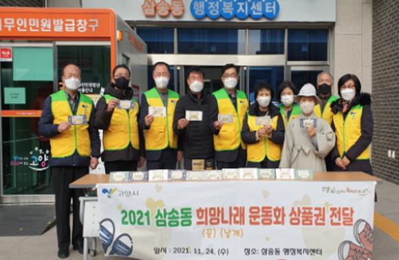 고양시 덕양구 삼송동지역사회보장협의체가 지난 24일 삼송동행정복지센터에서 한부모 및 차상위 계층 30명에게 삼송동 희망나래 운동화 상품권 전달식을 진행했다.