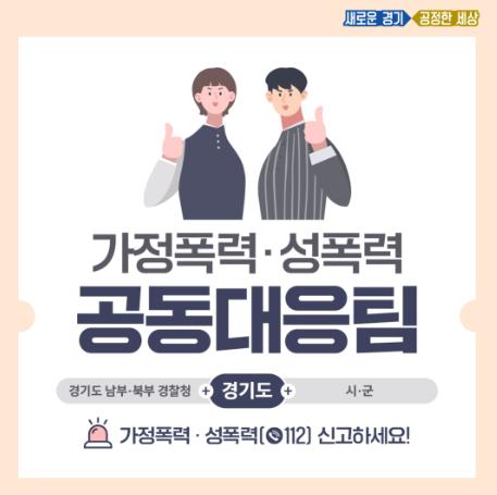 경기도가 가정폭력·성폭력 신고 시 피해자 초기 상담, 복지 지원, 지원기관 연계 등을 함께 수행하는 ‘가정폭력·성폭력 공동대응팀’을 올해 부천·하남시에 이어 내년 2곳을 추가 운영한다.