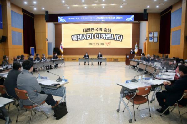 간담회에는 고양시 자치분권협의회 최창의 의장과 김훈래 부의장, 시민이 만드는 수원특례시 참여본부 정찬해 상임대표, 용인시 이·통장연합회 이인열 회장, 창원특례시협의회 강인호 회장 등 4개 특례시 시민협의회 대표단 30여 명이 참석했다.