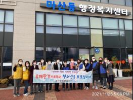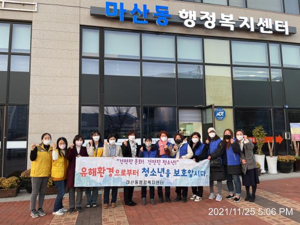 마산동행정복지센터에서는 지난 11월 25일 청소년 지도위원과 행정복지센터 공무원 등 12명이 참여한 가운데 마산동 초·중·고 학교주변, 번화가 청소년 통행금지 구역 등 취약지역을 중심으로 청소년 유해업소 지도단속 및 캠페인을 전개했다.