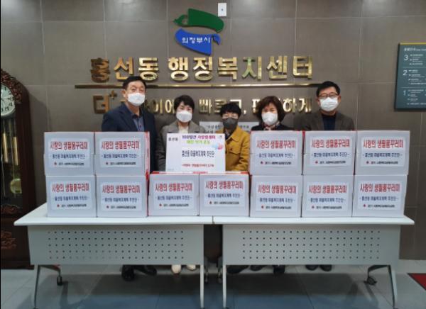 의정부시 흥선동 마을복지계획 추진단은 11월 25일에 주민 모두가 안전하고 따뜻하게 겨울을 보낼 수 있도록 취약계층 지원 일환으로 생필품 꾸러미 12개를 흥선동 홀몸어르신 12가구에게 전달했다고 밝혔다.