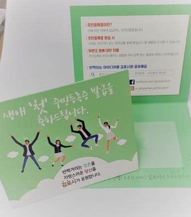 김포시가 생애 첫 주민등록증 발급을 기념하는 축하카드를 제작, 주민등록증과 함께 전달한다고 밝혔다.