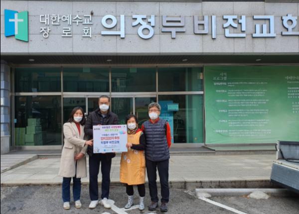의정부시 송산2동주민센터는 11월 24일 의정부 비전교회에서 정성껏 담근 김장김치 33상자를 후원했다고 밝혔다.