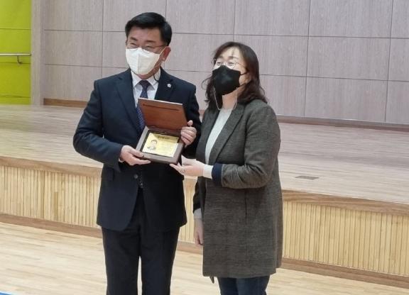 이 자리에서 길정은 학부모회 회장은 “권재형 의원은 평소 열정적인 의정활동을 바탕으로 지역 발전을 위해 노력하였다”며, “이번에도 학생들이 미세먼지로부터 안전한 체육활동을 할 수 있는 다목적 체육관 신설 및 안전한 통학로 환경 조성을 위해 누구보다 열심히 해주었다”며 감사패를 전달했다.