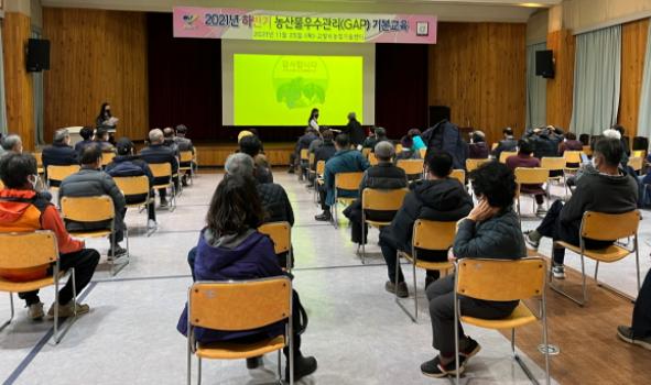 고양시는 지난 11월 25일 65명의 농업인이 참여한 가운데 농업기술센터 대강당에서 ‘2021년 하반기 농산물우수관리(GAP) 기본교육’을 실시했다.