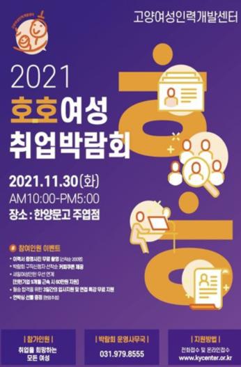 고양시와 고양여성인력개발센터가 여성 구직자와 경력단절 여성의 취업지원을 위해 ‘호호여성취업박람회’를 11월 18일부터 11월 30일까지 개최한다.