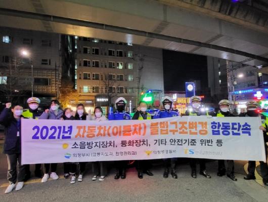 올해 세 차례 실시한 이번 합동단속은 11월 25일 밤 8시부터 약 1시간 40분가량 의정부시 호국로1339 부근에서 실시했으며, 의정부시청(교통지도과, 환경관리과), 의정부경찰서(교통안전계), 교통안전공단 경기북부본부 20여 명이 참여한 가운데 부착물 설치, 소음 허용기준 초과 등 불법 구조변경 행위 여부를 중점 단속했다.