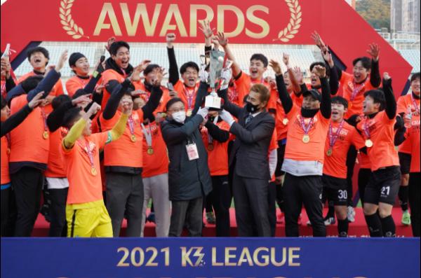 한국프로축구연맹의 승인 절차만 남겨둔 김포FC는 K3리그 챔피언 우승컵을 안고 더 당당하게 프로 무대로 올라서게 됐다.