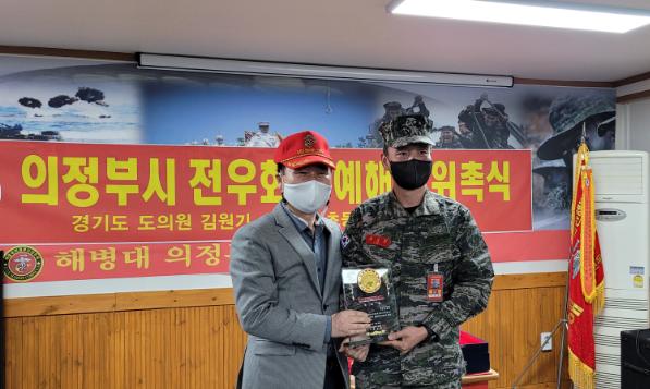 경기도의회 안전행정위원회 김원기 의원(더불어민주당, 의정부4)은 지난 26일 대한민국 해병대 의정부시 전우회 명예해병으로 위촉됐다. 향군회관 해병전우회 회의실에서 개최된 이날 위촉식에는 최승철 회장을 비롯한 50여명의 임원들과 회원들이 모여 김원기 도의원의 명예해병 위촉을 축하했다.