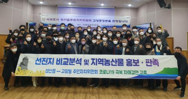 김명섭 고양동장은 “어려운 시기임에도 자매결연 활성화를 위해 먼 길 와주신 성산읍 주민자치위원회에 감사드린다. 앞으로도 활발한 교류를 통해 지역의 공동발전과 이익을 도모하기를 바란다”고 말했다.