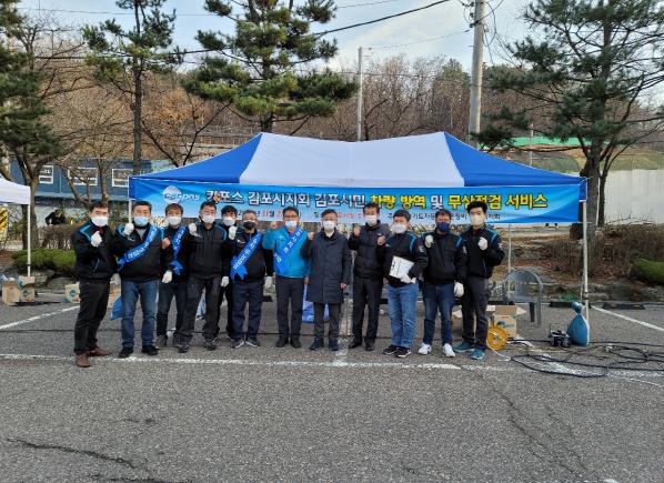 오전 10시 부터 오후 3시 까지 김포시청 주차장에서 시민 차량의 방역소독 실시, 불량 와이퍼 및 전조등·브레이크등의 전구는 무상으로 교체, 부족한 워셔액, 냉각수는 보충해주었으며 조향·제동·주행 장치, 배터리, 타이어 등의 이상 유무를 살펴보는 등 안전 점검을 실시했다.