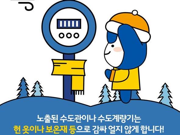또한, 동파세대 및 취약세대를 대상으로 수도계량기 동파 방지팩을 무상으로 보급하고 있으니 상수도 종합상황실로 문의하면 된다.