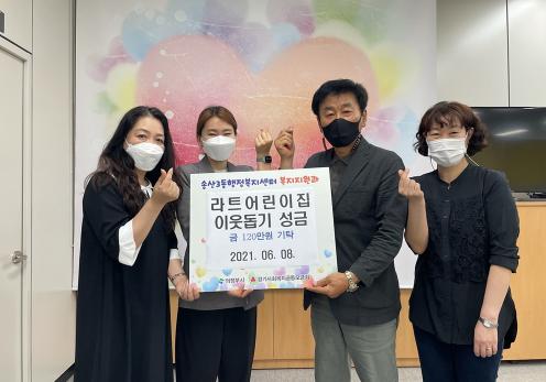 라트어린이집은 매해 어린이집 또한 원생과 학부모가 벼룩시장을 열어 그 수익금으로 성금을 마련해 기탁하고 있다. 올해도 잊지 않고 찾아온 작은 산타들의 소중한 성금으로 홀몸 노인들에게 선풍기를 전달 할 수 있었다.