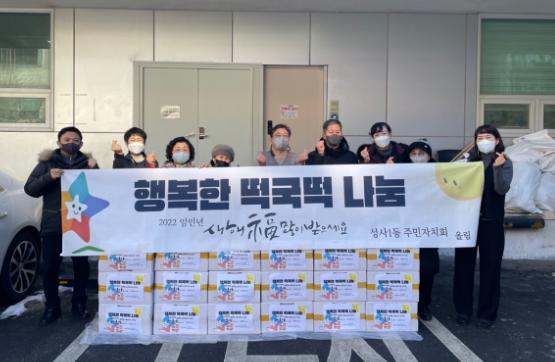 성사1동 주민자치회는 매년 초 주문 제작한 떡국떡을 손수 포장해 관내 소외계층에게 전달함으로써 이웃과의 훈훈한 온정 나누기를 이어오고 있다.