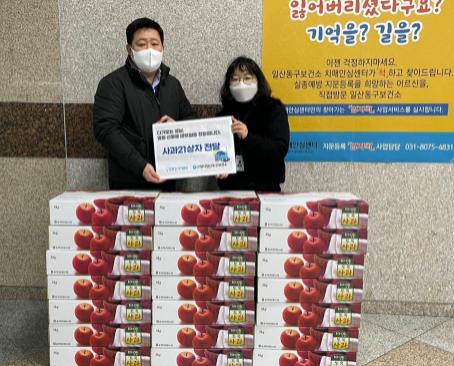 고양시 일산동구보건소가 설 명절을 앞두고 지난 26일 협력의료기관인 일산21세기병원(원장 권기영) 후원을 받아 관내 취약계층에게 사과 21박스(5kg)를 전달했다.