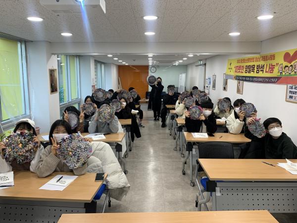 의정부시청소년재단, 흥선청소년문화의집은 지난 1월 29일 관내 청소년을 대상으로 자원봉사활동“따뜻한 양말목 방석 나눔”을 운영하였다.