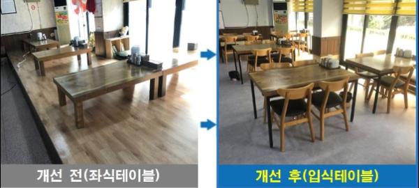 음식점 영업장 환경개선사업은 코로나19 장기화로 인한 소상공인의 부담을 덜고 좌식테이블 이용이 불편한 장애인, 노약자, 임산부, 외국인 등에게 편의를 제공하기 위해 입식테이블 교체 설치비용을 지원하는 사업이다.