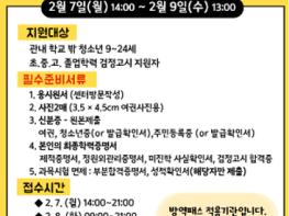 코로나 19로 인해 여러 복잡한 상황속에서 검정고시를 준비하고 있는 청소년들이 겪을 수 있는 시간상, 거리상 방문접수의 어려움을 해소하기 위해 대리접수, 접수방법안내 등의 지원도 함께 운영할 예정이다.