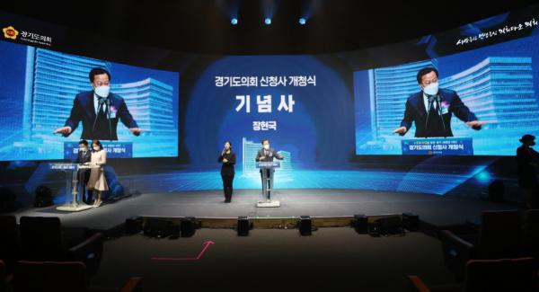 오병권 경기도지사 권한대행은 “경기도는 올 상반기 중 이전할 예정으로 의회와 소통과 협치를 통해 협력해 나가도록 하겠다”라고 말했고, 전해철 행정안전부 장관과 서영교 국회 행정안전위원장은 영상으로 축하를 대신했다.