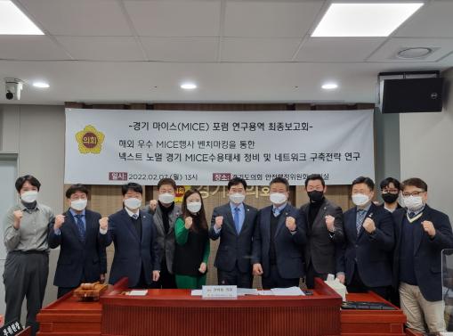 경기도의회 ‘경기 마이스(MICE) 포럼’(회장 권락용 의원)은 7일 안전행정위원회 회의실에서 ‘해외 우수 MICE행사 벤치마킹을 통한 넥스트 노멀 경기MICE 수용태세 정비 및 네트워크 구축전략 연구’에 대한 정책연구용역 최종보고회를 진행했다.