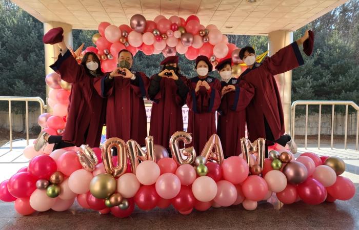 덕분에 학생과 만학도가 조화된 졸업식을 치르고, 멋진 사진을 남길 수 있었다.