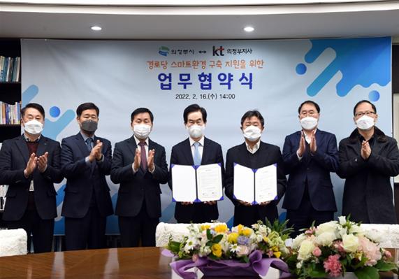 의정부시는 2월 16일 시장실에서 KT(의정부지사장)와 경로당 스마트 환경 구축 지원을 위한 업무협약을 체결했다.