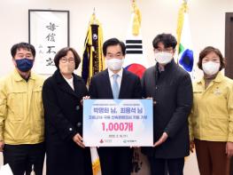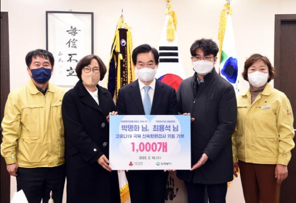 의정부시는 전국 보험왕 박명화 미래에셋금융서비스 이사(보험재무담당사)가 오미크론 확진자 급증으로 자가진단키트 확보에 어려움을 겪고 있는 가운데 신속항원 검사키트 1,000개를 기부했다고 밝혔다.